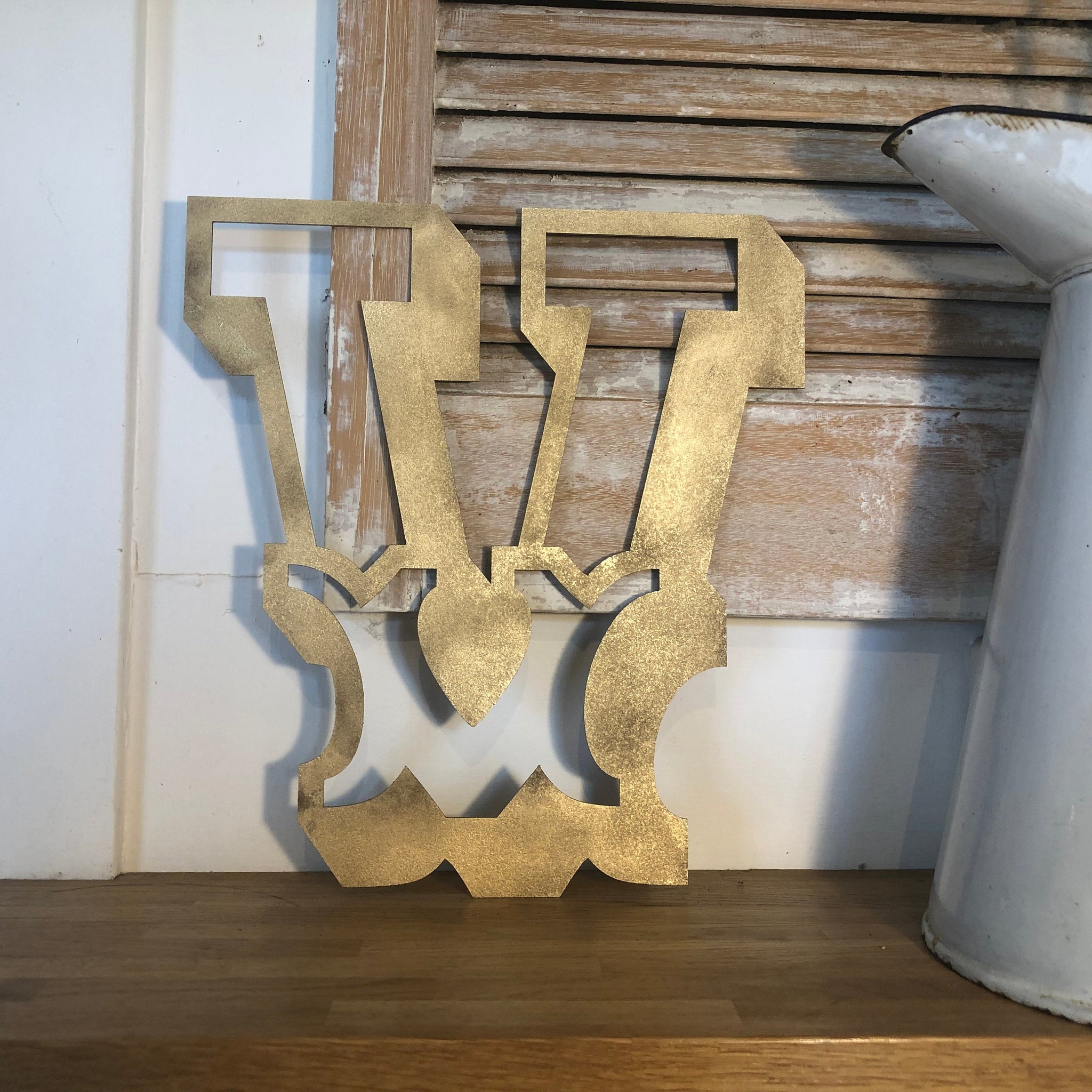 Lovingly rusted by the sun, wind, and rain here in Norfolk, these are then sprayed gold over the rust to give a slightly mottled distressed appearance.