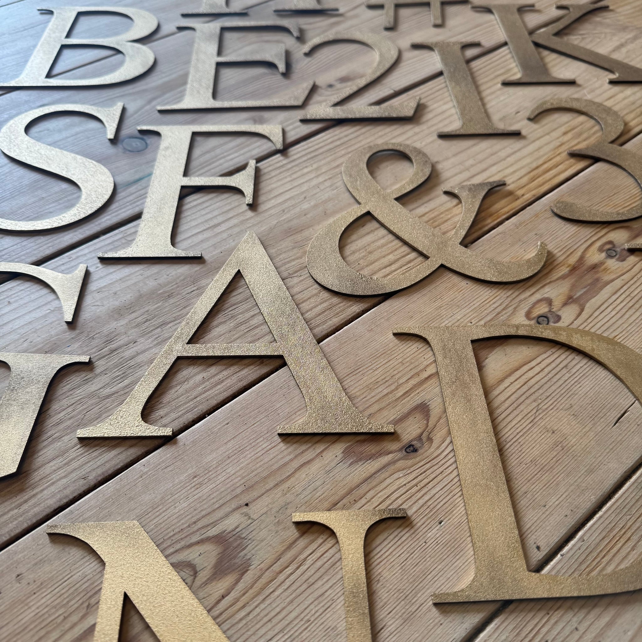 Our rustic distressed gold metal letters- classic font