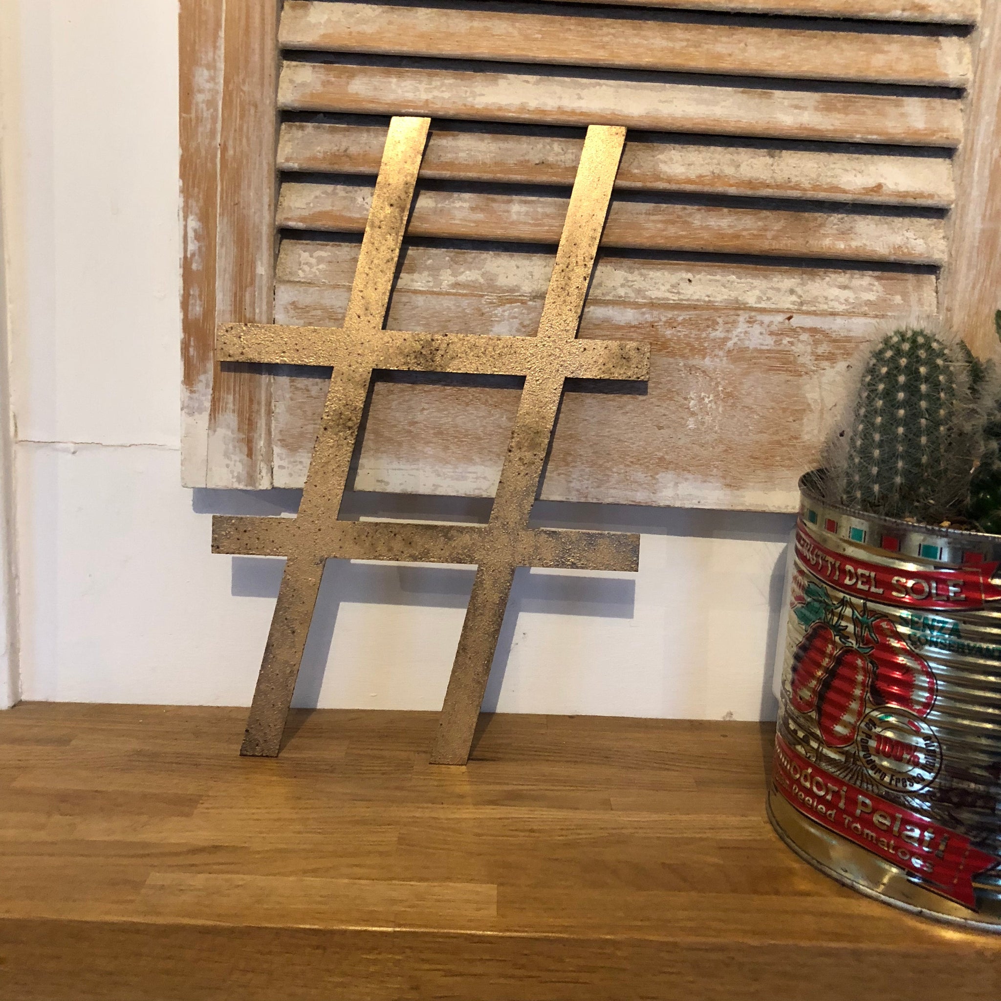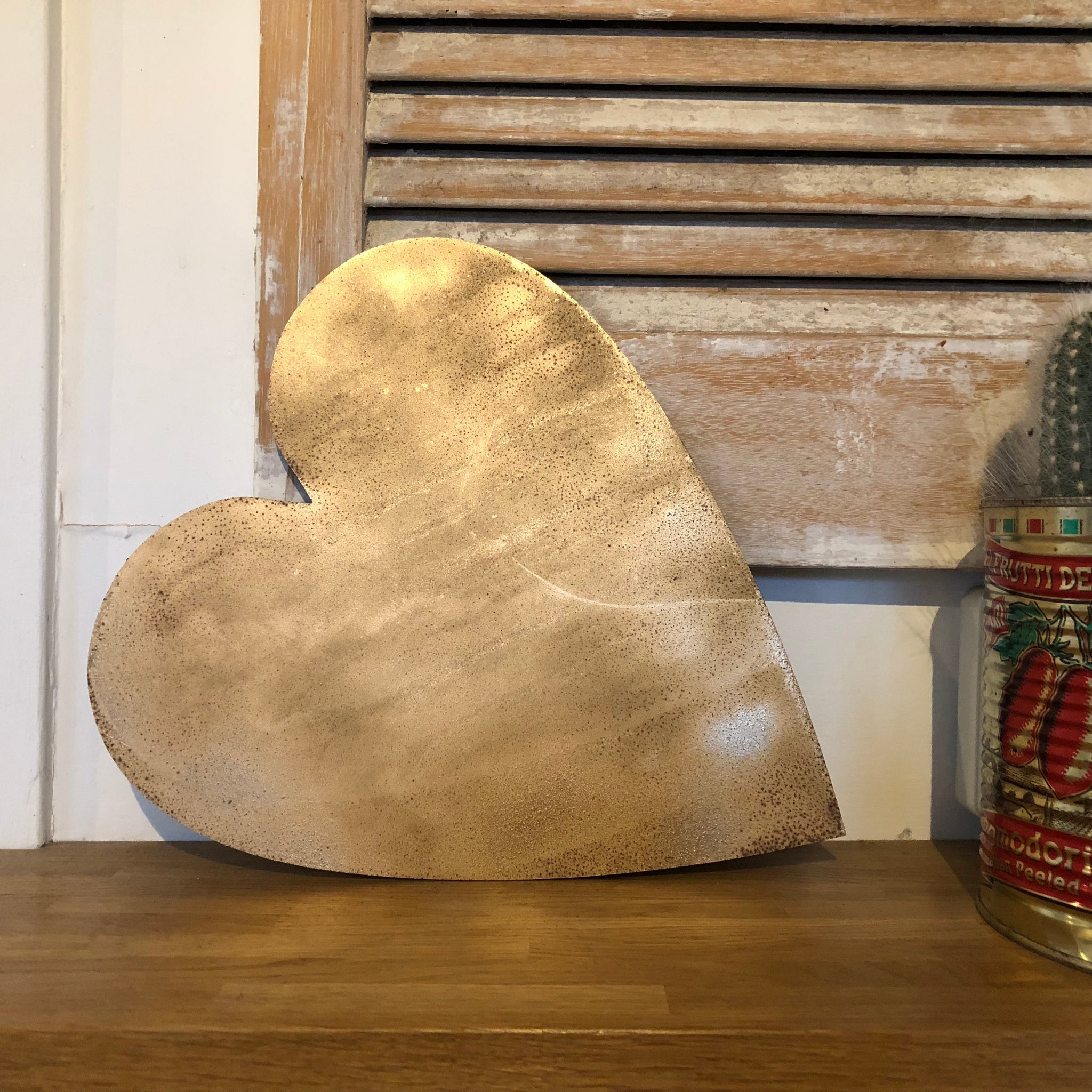 Lovingly rusted by the sun, wind and rain here in Norfolk, these are then sprayed gold over the rust to give a slightly mottled distressed appearance.