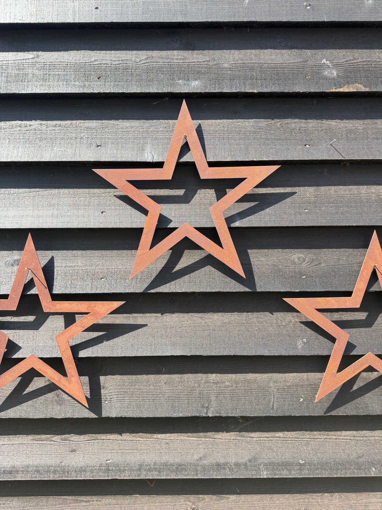 Our stars are made from a high grade 2mm thick steel, which we then put through a rusting process to give them an aged patina.