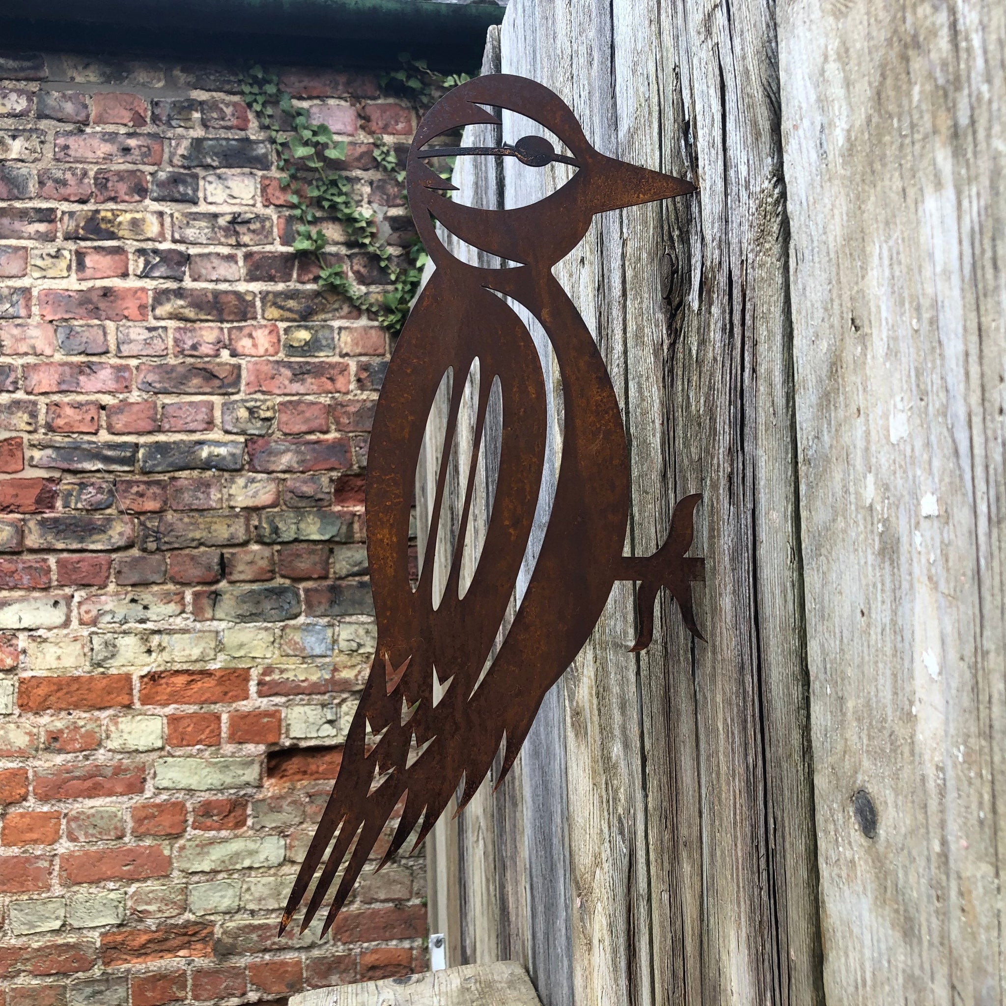 Our woodpeckers are made from a high grade 2mm thick steel, which we then put through a rusting process to give them an aged patina.